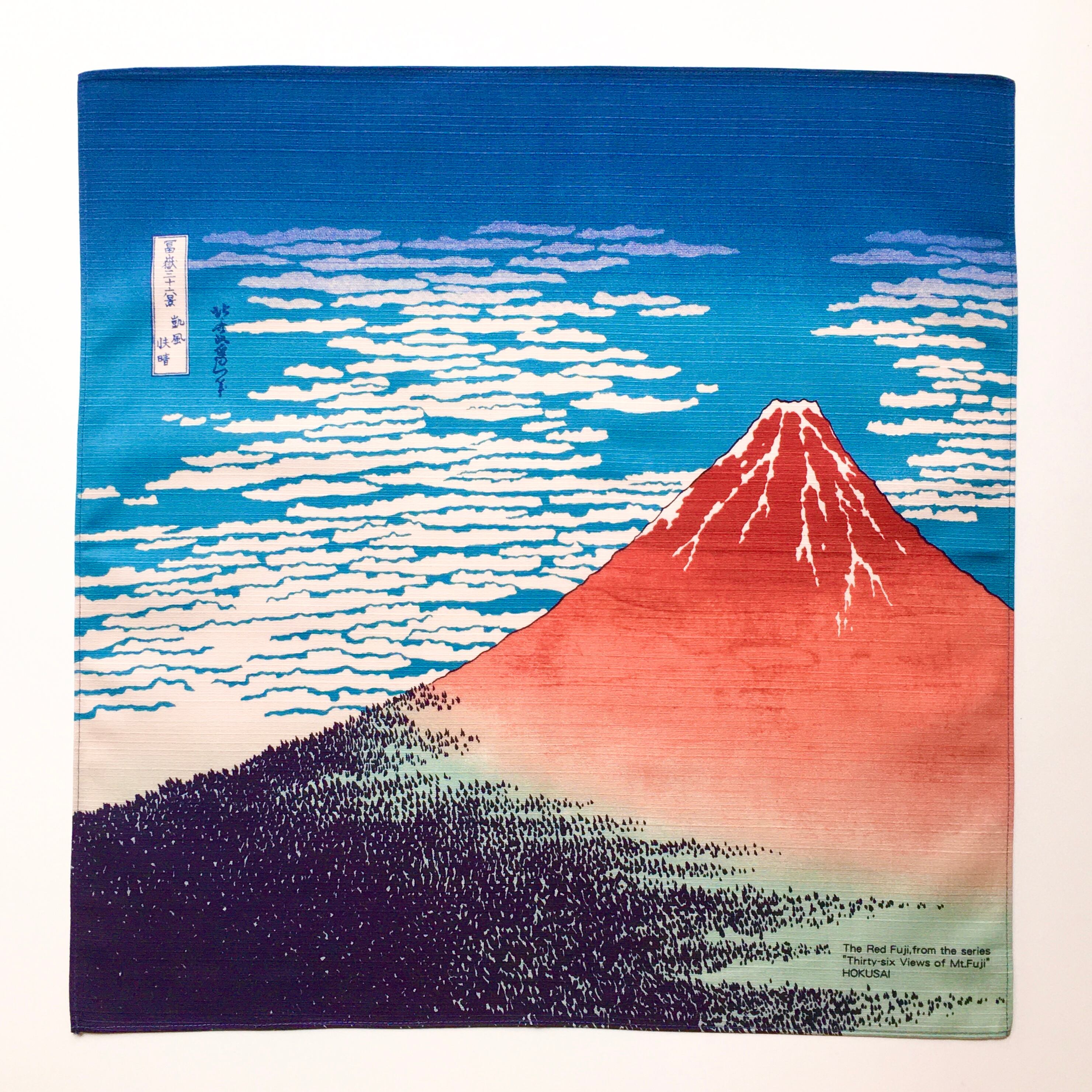 ■ 葛飾北斎の作品 富士山を主題として描かれた富嶽三十六景の中で有名な作品の一つです。 “凱風快晴(赤富士)”早朝に富士山が朝日に染まっていく様子を描いています。