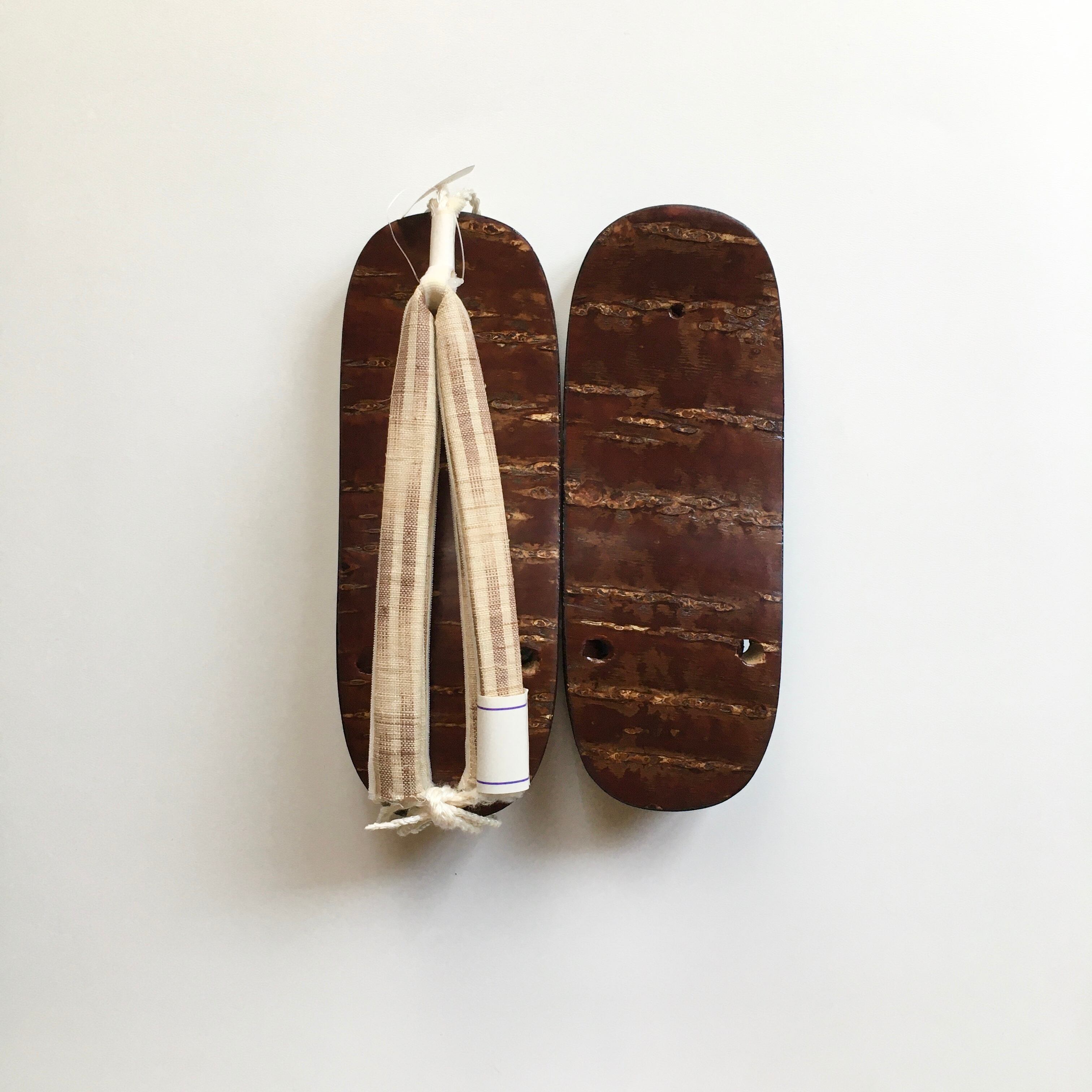 桜皮の雰囲気に合わせ、麻の花緒でナチュラルに。